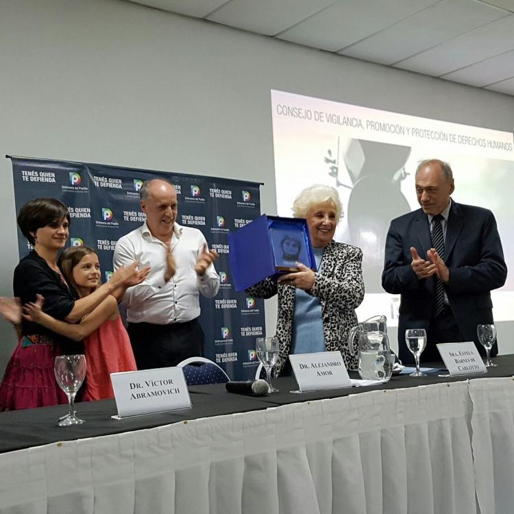La Defensoría del Pueblo de la Ciudad Autónoma de Buenos Aires presentó los premios «Alicia Oliveira», un galardón que busca distinguir a referentes de diferentes ámbitos cuya labor y lucha hayan contribuido a lograr conquistas significativas en el ejercicio de los derechos humanos. La primera en recibirlo fue la presidenta de Abuelas de Plaza de Mayo, Estela de Carlotto, en reconocimiento a su histórica trayectoria en favor de la memoria, la verdad y la justicia. De la entrega participó el Defensor del Pueblo porteño, Alejandro Amor.