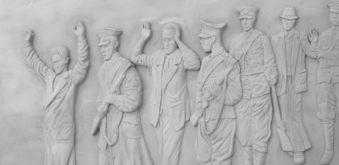 Estas imágenes fueron creadas sobre la base de fotografías reales de cada uno de los hechos. “Lo que yo presento es el lado ‘B’ de la historia, ese lado que el mismo Estado ha encubierto. Entonces, lo que pasa aquí es bastante interesante, porque en los frisos están lo que yo llamo los verdaderos héroes”, explica el artista visual.