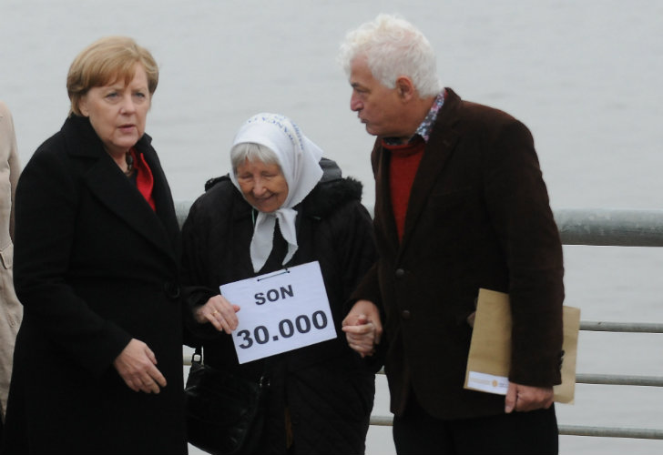 La canciller alemana Angela Merkel visitó el Parque de la Memoria y en homenaje a las víctimas de la dictadura realizó una ofrenda floral junto a Marcelo Brodsky y Vera Jarach, de Madres de Plaza de Mayo. La militante por los derechos humanos arribó al lugar con un cartel que decía «Son 30.000», en defensa de la cifra oficial de detenidos-desaparecidos durante la última dictadura cívico-militar que fue cuestionada por muchos funcionarios del oficialismo.