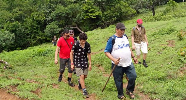 Felipe Tobar, alcalde de San José Las Flores, con parte del grupo al que guía hacia el lugar exacto donde en mayo de 1980 se produjo la masacre de Sumpul, en las orillas del río del mismo nombre, donde unas 600 personas civiles fueron asesinados por el ejército al comienzo de la guerra de 12 años en El Salvador. Crédito: Edgardo Ayala /IPS