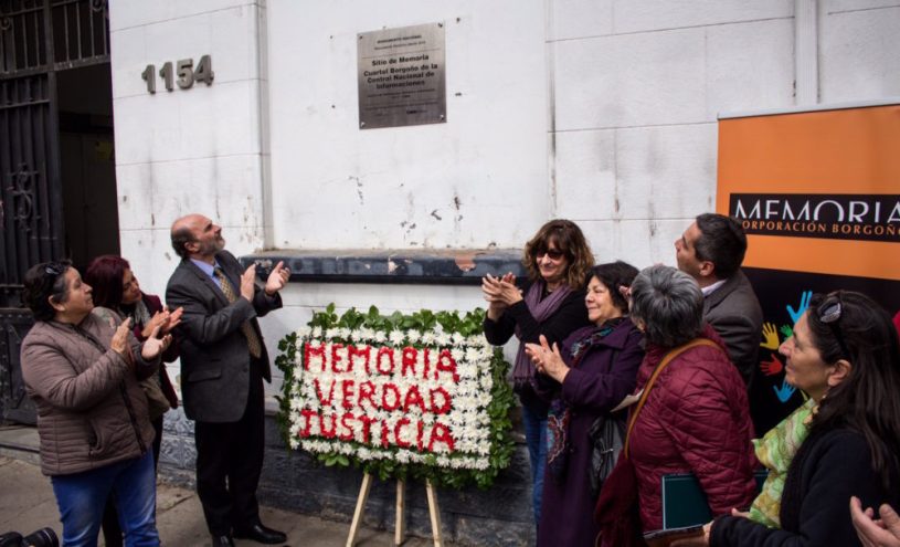 Con la significativa presencia de sobrevivientes, familiares de víctimas, agrupaciones de defensa de los Derechos Humanos se descubrió hoy la placa que identifica al Monumento Nacional Sitio de Memoria, el Ex Cuartel Borgoño, en el inmueble ubicado en la calle Borgoño N° 1154.
