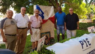 Se ha decorado el Monolito en Memoria de Salvador Allende con su retrato, rosas rojas y una bandera chilena que dejaba entrever el escudo de la ciudad de València, ante los cuales se han pronunciado dos breves parlamentos tras la presentación a cargo de Eduardo Béjar por parte de la PIE.
