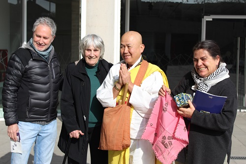 Esta mañana visitó las dependencias del Museo de la Memoria, junto a la familia de Víctor Jara: Joan Jara (esposa) y Amanda Jara (hija), quienes acompañaron en todo momento al monje budista, quien conoció la historia del Golpe Militar, las violaciones a los DDHH y parte de la historia de nuestro país como también otras atrocidades que se cometieron en época de dictadura.