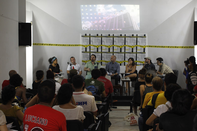 Por su parte, Josué Veloz, en representación del colectivo Nuestra América, partió de un cuestionamiento a la supuesta necesidad de no vivir presos del pasado y avanzar hacia delante (según “recomendara” Barack Obama a América Latina en la Cumbre de las Américas en 2009) para hacer énfasis en el impostergable reencuentro con los imaginarios de la lucha anticolonial y antiimperialista que han sido la savia de nuestra región. Por ello, resaltó el trabajo que su colectivo realiza en relación a la profundización y el apropiamiento de la práctica internacionalista del proyecto revolucionario cubano.