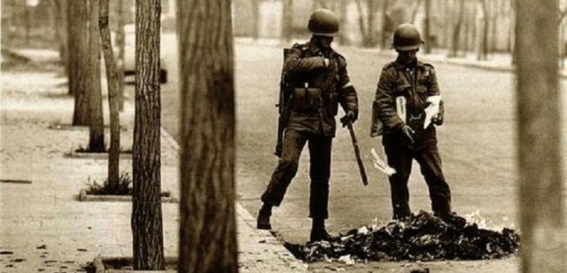 El 23 de septiembre de 1973, con un gran despliegue mediático, un grupo de uniformados reunió un conjunto de obras literarias arrebatas a disidentes y les prendió fuego en plena vía pública, en calle Diagonal Paraguay esquina Lira.