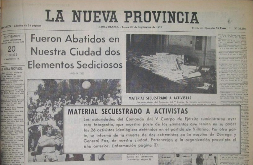Efectivamente, el Tribunal Oral en lo Criminal Federal de Bahía Blanca dictaminó que el diario de Vicente Massot, uno de los principales integrantes de la pata civil de la última dictadura, deberá publicar «la rectificación, como acto moralmente reparatorio y de reconstrucción de la memoria, de la publicación oportunamente vertida en la que se informaba a la ciudadanía que Fernando Jara, Daniel Guillermo Hidalgo, Olga Silvia Souto Castillo, Daniel José Bombara, Rubén Ruiz, Julio Ruiz, Mario Medina, Pablo Victorio Boholavsky, Víctor Benamo y Orlando Luis Stirneman fueron detenidos o abatidos en enfrentamientos militares, cuando quedó acreditado en este proceso que fueron objeto de secuestro, tortura, y en su caso, fusilamiento por parte del personal militar de la época, haciendo expresa mención de la fecha, página y sección en la que fueran vertidas esas noticias».