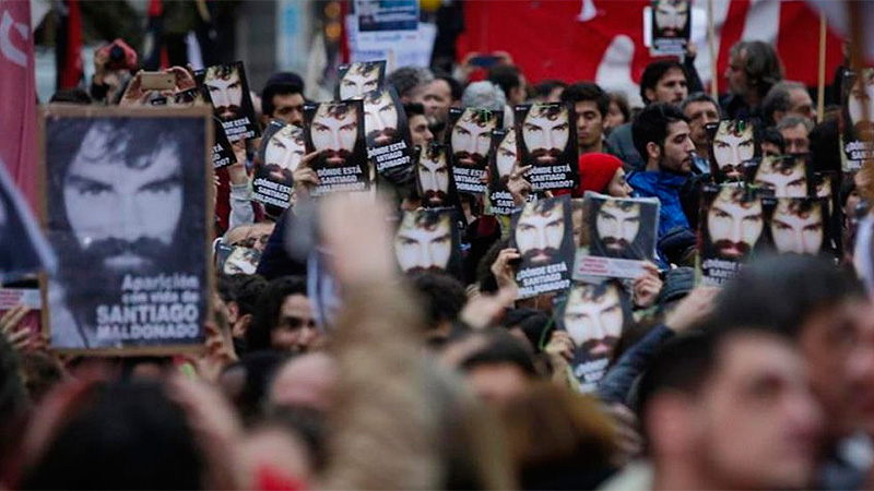 «Santiago fue secuestrado por la Gendarmería el 1 de agosto cuando cortaba la ruta exigiendo la libertad del Lonko Facundo Jones Huala. El gobierno nacional desplegó, desde el primer día, una campaña de encubrimiento y negación del secuestro de Santiago.