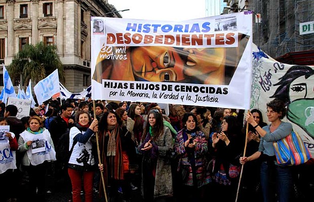 La iniciativa es del colectivo Historias Desobedientes y con Faltas de Ortografía, conformado recién este año tras aparecer por primera vez en público y dar su testimonio varias mujeres que condenan lo hecho por sus progenitores. Su bautismo como agrupación fue el 3 de junio pasado en el marco de una movilización del ‘Ni una menos’, cuando marcharon bajo un cartel que rezaba “por la memoria, la verdad y la justicia” de aquellos a quienes sus padres secuestraron, torturaron y asesinaron durante a dictadura.