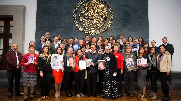 Treinta y cinco días después de que la aprobó el Congreso de la Unión, el presidente Enrique Peña Nieto promulgó la Ley General en Materia de Desaparición Forzada de Personas, Desaparición Cometida por Particulares y del Sistema Nacional de Búsqueda de Personas.