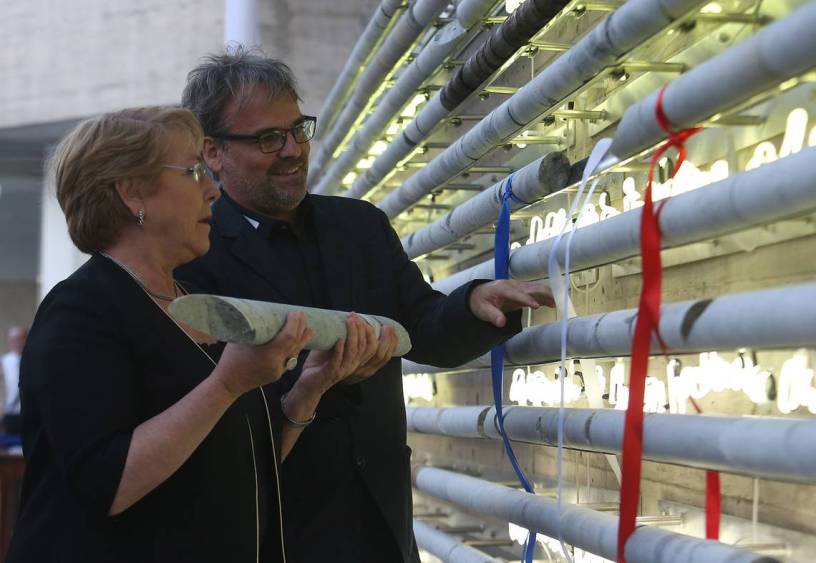 «Cada capa está conectada por testigos geológicos, por una línea de vida y de resistencia que proviene de una geología forjada por un tiempo que se extiende más allá de nuestras vidas, que nos antecede, tiempo que en sus dimensiones puede contener y consolar el dolor», detalló.
