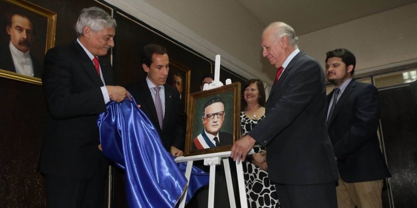 Los retratos de los presidente Salvador Allende Gossens y de Ricardo Lagos Escobar volvieron a sus puestos de honor, en la galería de presidentes de la república, que cursaron estudios en esa casa de estudios.