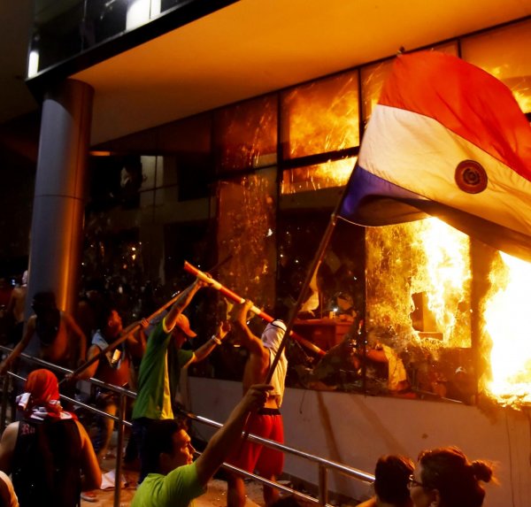 Horas antes, en las calles del microcentro de Asunción se registraron saqueos y actos vandálicos concretados por infiltrados en una manifestación de protesta contra el intento de reelección del presidente Horacio Cartes.